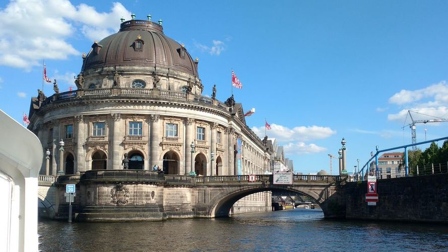 Die Idee war, nach dem Spaziergang durch das Schloss das Bodemuseum zu besuchen. Hier ein Blick auf das Museum von der Spree aus, gleiches Bild wie bei der Bootsrundfahrt am Montag. Das Bodemuseum beherbergt eine sehenswerte Skulpturensammlung, das Münzkabinett und anderes.