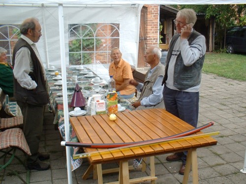 Die Freunde sind schon eingetroffen, mit zu helfen. Ulrich empfängt telefonische Glückwünsche.